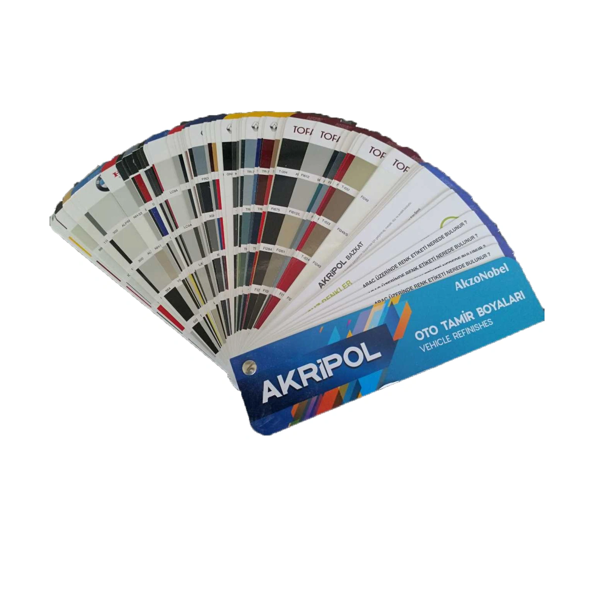 AkzoNobel Akripol Otomotiv Kutu Boya Renk Kataloğu Kartelası 2024 öncesi, akripol markasının yardımcı ürün kategorisi için geliştirdiği kullanışlı bir üründür.